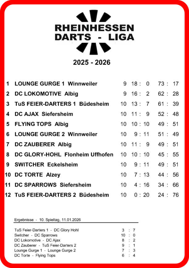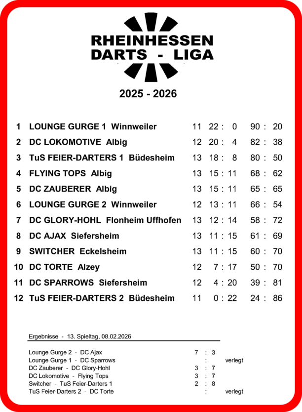 Tabelle 25/26 - Dart Siefersheim