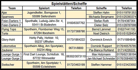 DC Zauberer   Switcher   Flying Tops   DC Lokomotive  | Vorrunde Pokal TuS Feier-Darters 1   Lounge Gurge 2   DC Glory Hohl   DC Ajax  | 4 - 6   6 - 5   5 - 6   verlegt  |